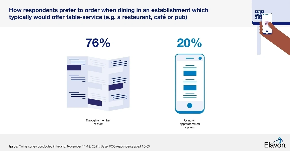 At a topline level, while more than three quarters of respondents (76%) still want to order at their table through a member of staff, one in five (20%) prefer to use an app or automated system.